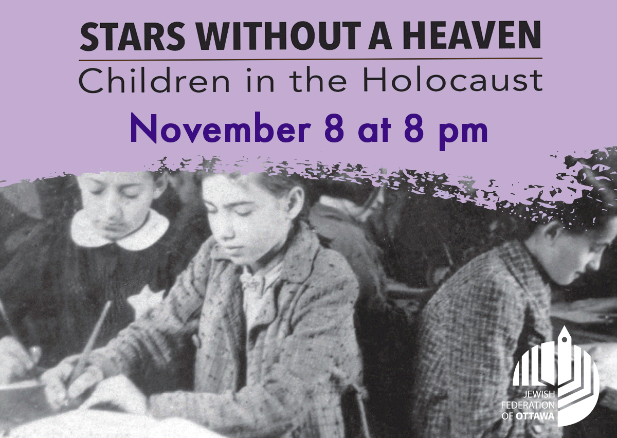 The Shoah Committee of the Jewish Federation of Ottawa has invited a number of local schools to participate in Holocaust Education Month this November by hosting the free experiential panel exhibit of Stars without a Heaven, which was developed by Yad Vashem. The exhibit will also be showcased at the Greenberg Families Library from November 1 - 8, and, in collaboration with The Centre for Holocaust Education and Scholarship (CHES), the exhibit will circulate in local Ottawa high schools throughout November. The community is also invited to join Yad Vashem’s virtual launch of Stars without a Heaven on Nov. 8 at 8 pm. (Register here.)