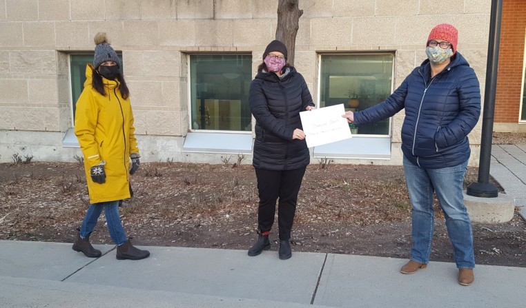 The Women’s Collective Philanthropy Program (WCPP) granted $2,000 to Jewish Family Services of Ottawa for their Shalom Bayit program. The funding was used to provide technology and a safe virtual support space for their clients. From left to right, Lynne Oreck-Wener (WCPP founder and executive), Sarah Caspi (Executive Director, Jewish Family Services), and Shlomit Jacobson (WCPP executive) took part in the cheque presentation.