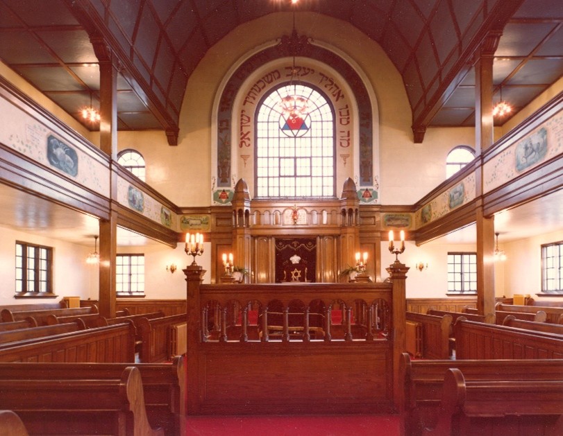 These beautiful murals were originally on the walls of the Murray Street shul. Congregation Machzikei Hadas began in a home on St. Patrick Street and grew to nearly 20 families by 1908, leading to the purchase of a building on Murray. In 1927, a new synagogue was commissioned at Murray and King Edward, designed by architect Werner Ernst Noffke. The Orthodox sanctuary featured Eastern European-style towers, and in 1935–36, murals of the Zodiac, Western Wall, and Tomb of the Patriarchs were painted in the women’s gallery.
