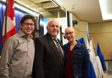 Ben Karp Award recipient Rabbi Steven Garten (centre) with Grossman-Klein Teen Leadership Award recipients Jonah Leinwand (left) and Dahlia Belfer at the SJCC AGM, February 4. (Alex Sarna)