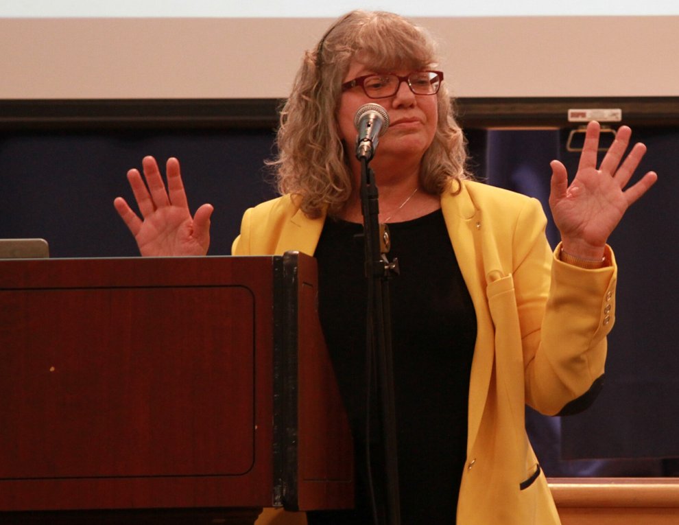 Photo 1: Ora Horn Prouser, speaking at a Jewish Disabilities Awareness, Acceptance and Inclusion Month event, February 20, at the SJCC, said she encourages people and communities to search for acceptance of disability in the Bible. (Dana Simpson)