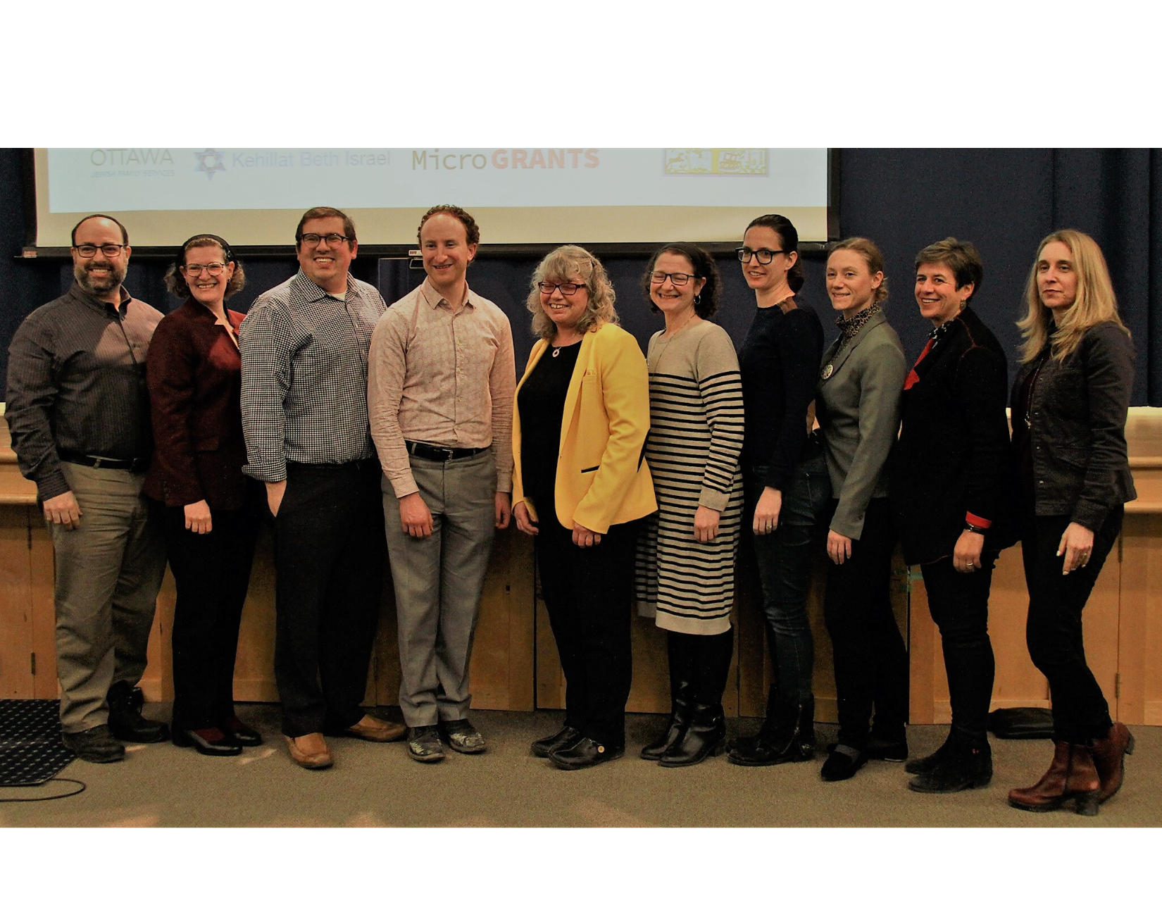 Photo 2: Representatives of Tamir, JOIN, Kehillat Beth Israel (KBI) and the Jewish Federation of Ottawa gather with keynote speaker Ora Horn Prouser at a Jewish Disabilities Awareness, Acceptance and Inclusion Month event, February 20, at the SJCC. (From left) Cantor Jason Green of KBI; Jodi Green, Tamir coordinator of Judaic outreach and inclusion; Rabbi Eytan Kenter of KBI; Adam Moscoe, acting president of the Tamir Foundation; Ora Horn Prouser; Rabbi Deborah Zuker of KBI and JOIN; Ruchama Uzan and Madeleine Hill Werier of JOIN; Andrea Freedman, Federation president and CEO; and Sarah Beutel, Federation vice-president of community building. (Dana Simpson)