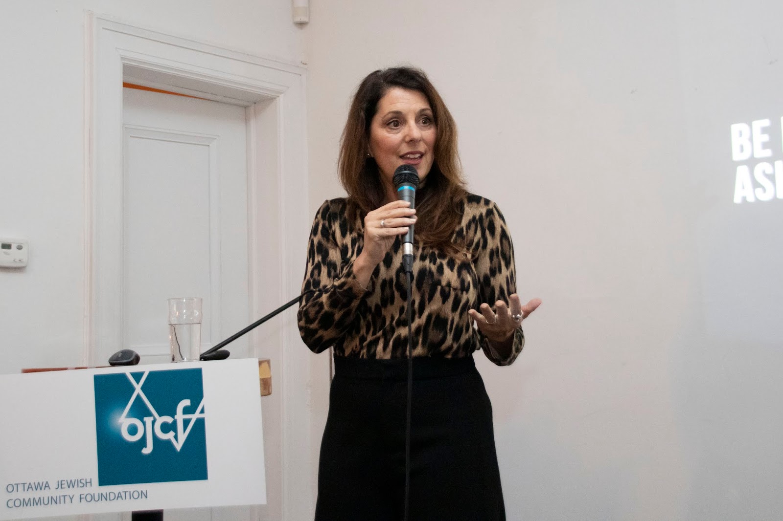 In her greetings, Andrea Freedman, president and CEO of the Jewish Federation of Ottawa and Ottawa Jewish Community Foundation, spoke about the hateful graffiti discovered that morning at the Ottawa Centre campaign office of newly re-elected MP Catherine McKenna, and told the audience, “I’m going to put one extra burden on you. Think about a friend, a colleague, and take their hand. It’s up to every one of us to fight for what we believe in, for each of us to stand up and answer the call.”