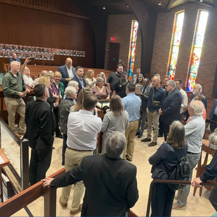pastors and Christian leaders, where they learned about Jewish ritual practice and were given a tour of the sanctuary by Cantor Jason Green. For most, they had never been inside a synagogue or seen a Torah and were touched by seeing the “Old Testament” in its original language and form.