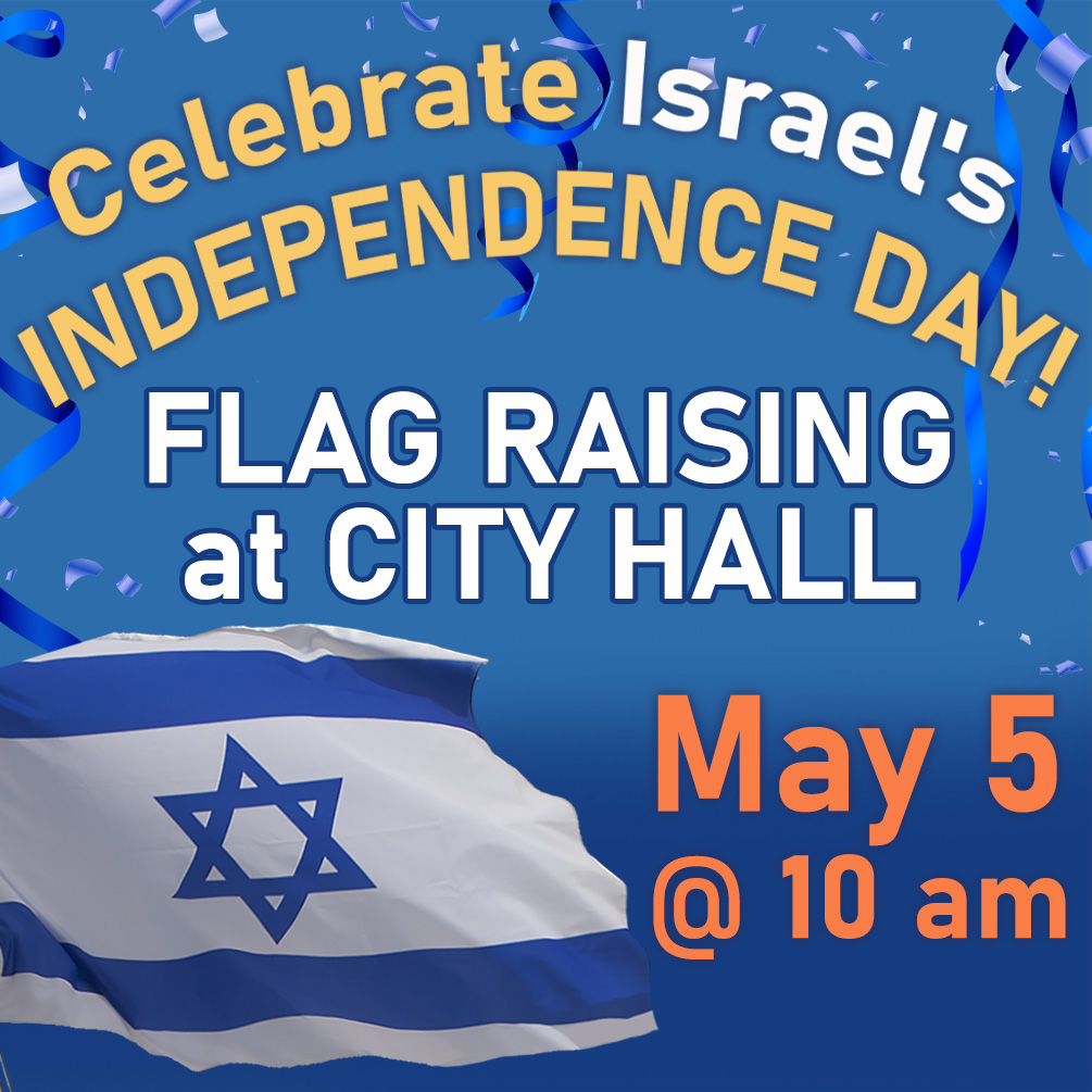 For the past two years, while Israel’s flag has flown over City Hall on Yom Ha’atzmaut, the in-person ceremony has not taken place due to the pandemic. Standing together with elected officials from all levels of government, as the flag is raised to the stirring sounds of Hatikvah, is always a proud moment. Register here for the flag raising.