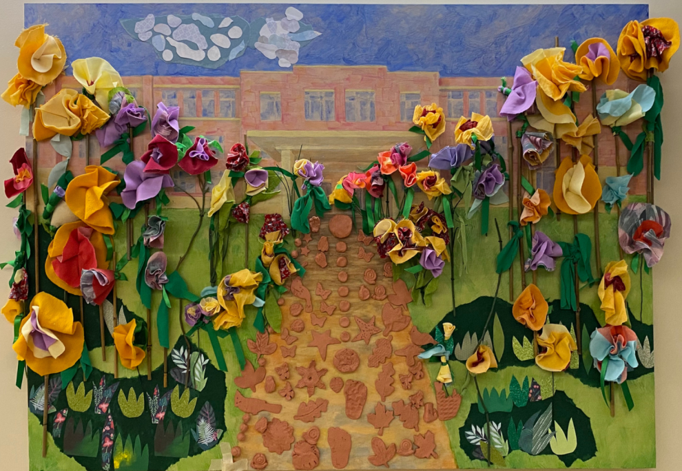 The mixed-media work included fabric, clay, and collage and was inspired by Monet’s The Artist’s Garden at Vétheuil. When community members went to see the artwork when it first went on display Aug. 10, they could even add a flower of their own.