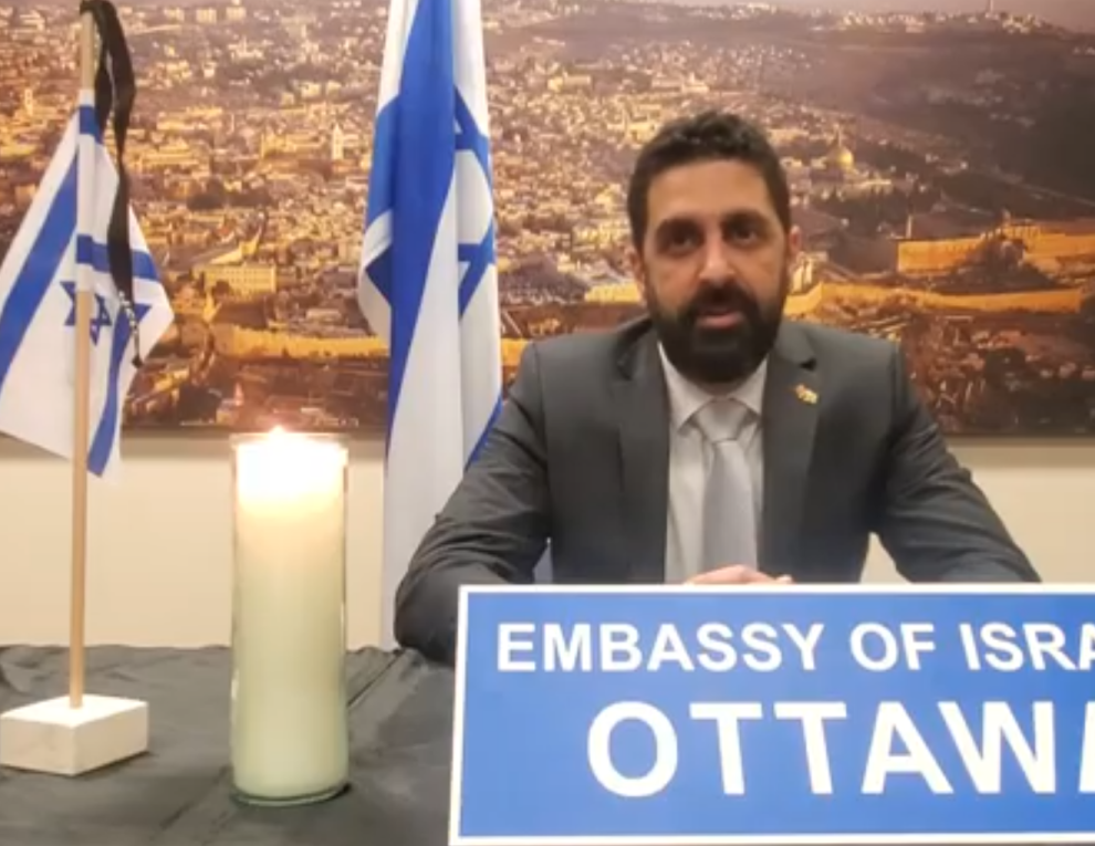 Photo: Ohad Nakash Kaynar, deputy chief of mission at the Embassy of Israel in Ottawa, delivers a Yom Hazikaron message via video.