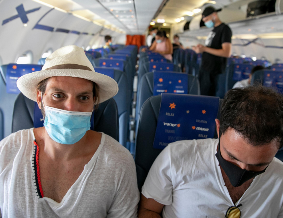 Photo: Passengers on an Israir flight between Tel Aviv and Eilat, Aug. 17, 2020. (Olivier Fitoussi/Flash90)