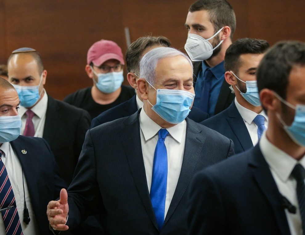 Photo: Israeli Prime Minister Benjamin Netanyahu in the halls of the Knesset after the swearing-in of the new government on May 17, 2020. (Alex Kolomoisky/Pool)