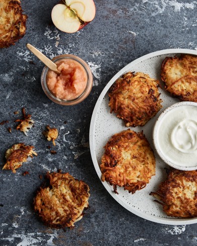 My childhood memory of latkes is bittersweet. My mom made the most delicious latkes. Thin, lacy, and very crispy at the edges, they were held together with the bare minimum of egg and matzoh meal. She served them wi…